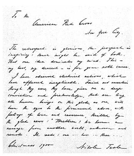 “Eu dediquei grande parte da minha vida no aperfeiçoamento de um pequeno e compacto aparato o qual uma considerável quantidade de energia pode ser enviada através do espaço interestelar, a qualquer distância sem nem um pouco de dispersão.