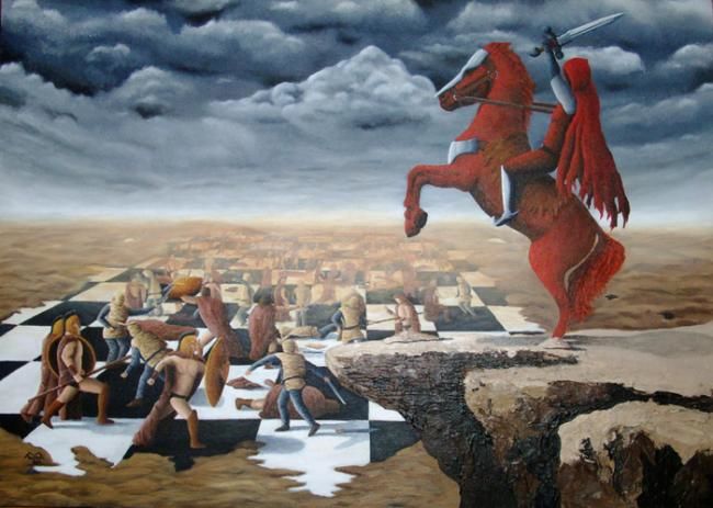E saiu outro cavalo, vermelho; e ao que estava assentado sobre ele foi dado que tirasse a paz da terra, e que se matassem uns aos outros; e foi-lhe dada uma grande espada.