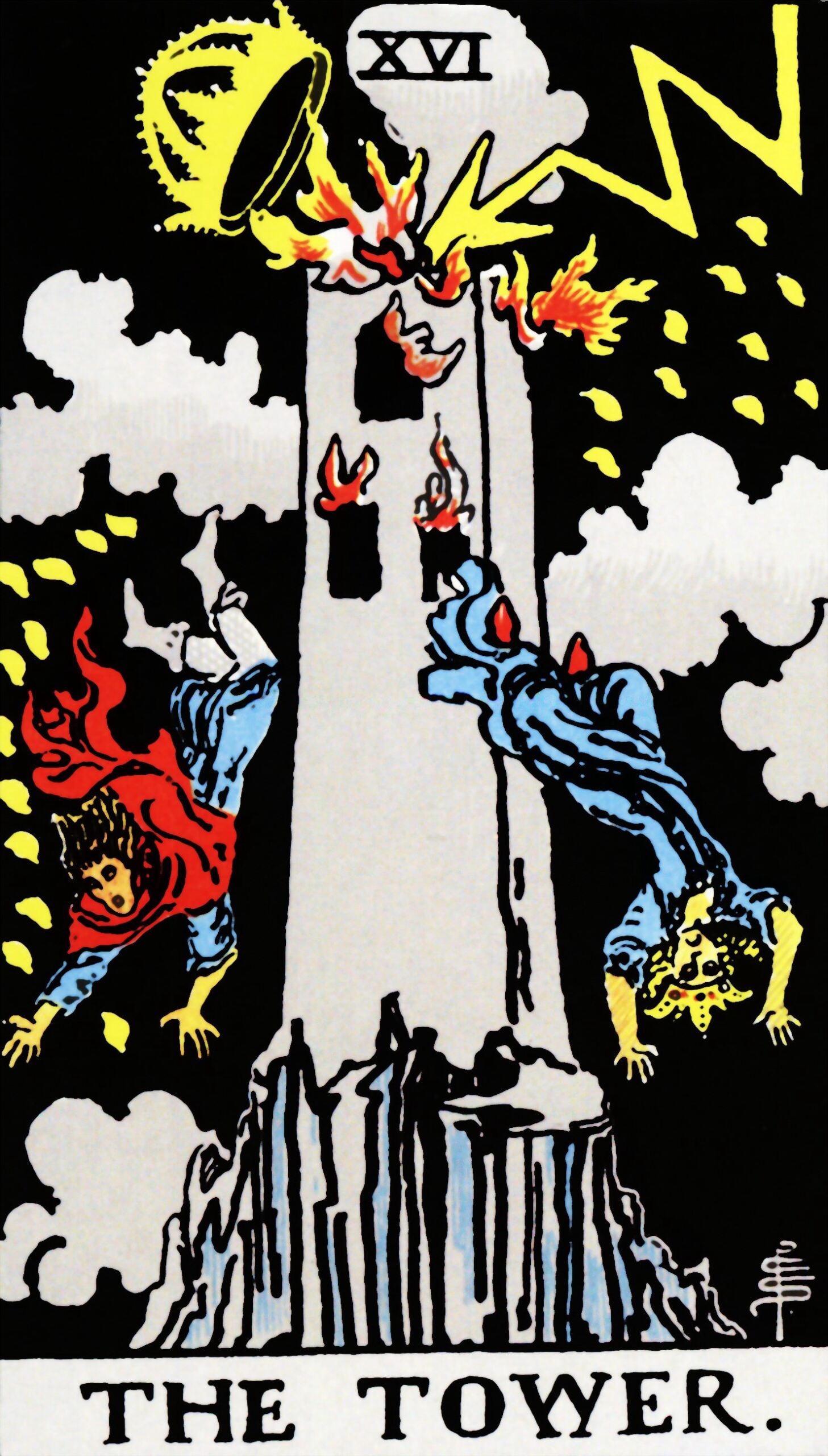 E somando 16, a data nos leva à outro arcano funesto: a Torre fulminada, símbolo do orgulho e da arrogância das nações terminando de forma trágica, ruínas e morte no final.