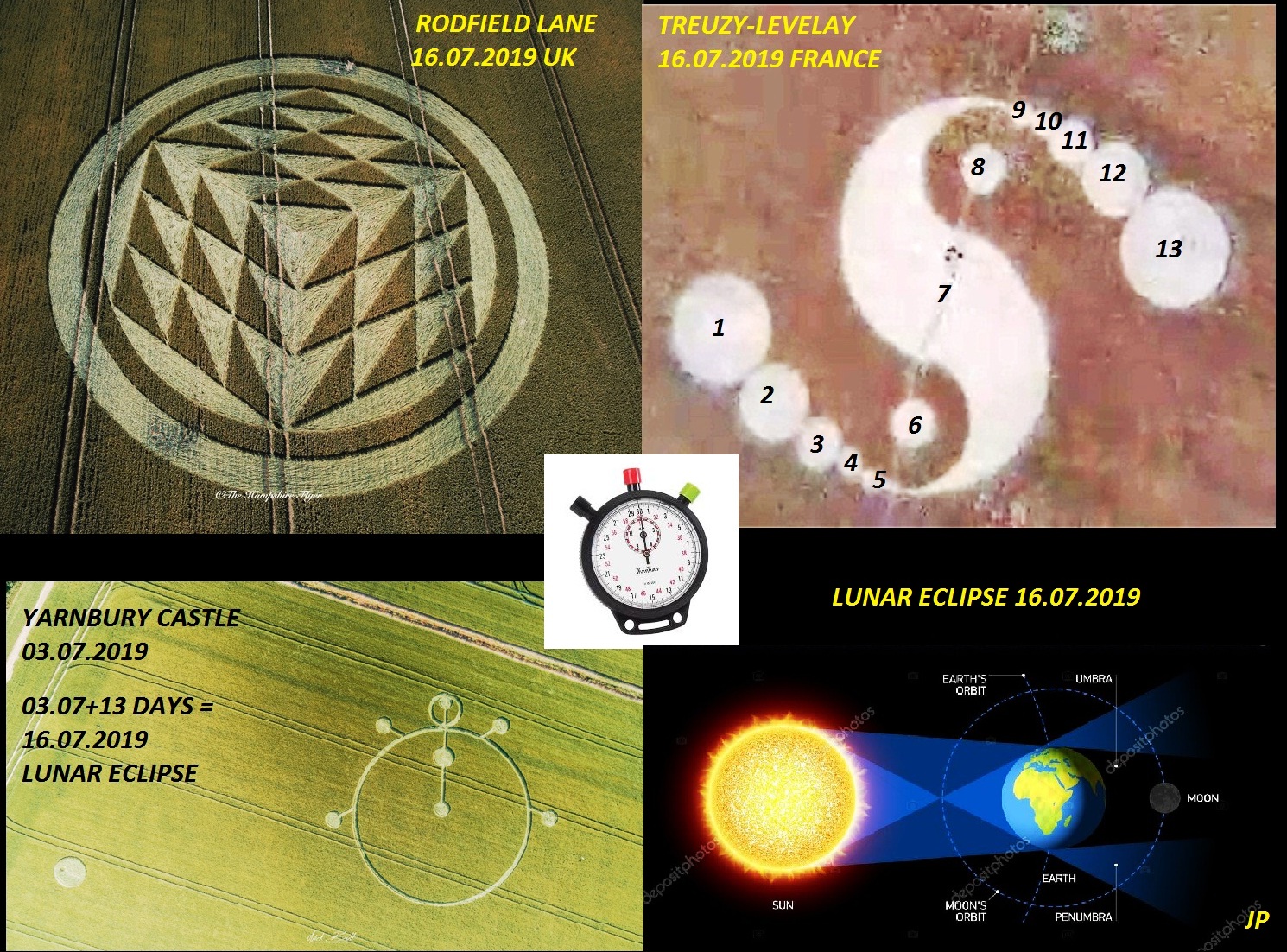 E por falar em cronômetro, estão lembrados do crop circle de Yarnbury castle, 3 de Julho, que marcou o eclipse lunar na forma de um cronômetro?